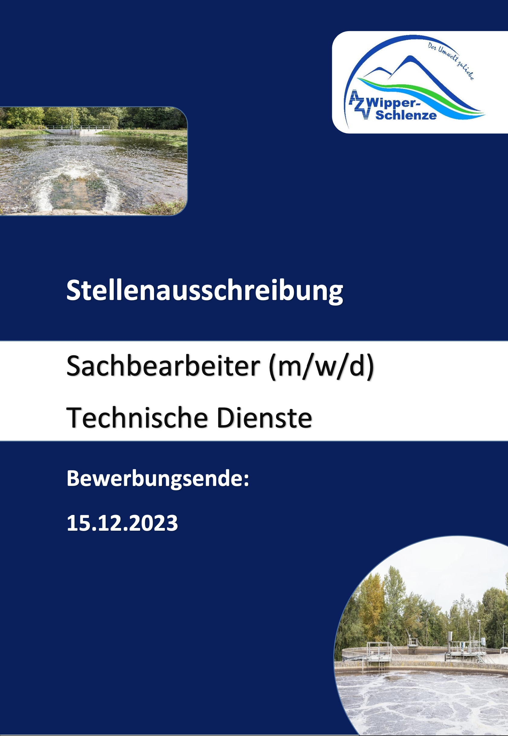 Zur Verstärkung seines Teams beabsichtigt der Abwasserzweckverband Wipper-Schlenze vorzugsweise zum 01.01.2024 eine Stelle als
