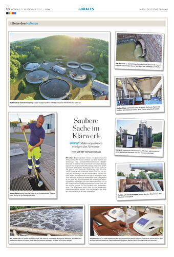 Wir nutzen die Gelegenheit einmal eine Runde mit dem Abwassermeister Hannes Böhme auf dem Gelände der Kläranlage des Abwasserzweckverbandes Wipper-Schlenze zu drehen. Die in Hettstedt betriebene Kläranlage ist eine so genannte SBR-Anlage. Das steht für Sequentielle Biologische Reinigung. Bei dieser Klärtechnik gibt es eine getrennte Vorklärung zum mechanischen Rückhalt der Grobstoffe sowie Sand und ein biologisches Belebungs- und Nachklärbecken. Im SBR-Becken findet die eigentliche biologische Reinigung statt. Dort wechseln sich kurze Belüftungs- und Ruhephasen ab. So kann der Belebtschlamm mit unzähligen Mikroorganismen entstehen, die das Wasser reinigen. Da in der Ruhephase der Belebtschlamm zu Boden sinkt, bildet sich im oberen Teil des Beckens eine Klarwasserzone. Das Klarwasser wird dann in das Klarwasserdämpfungsbecken geleitet. Von dort aus wird das Wasser gedrosselt in die Wipper eingeleitet.